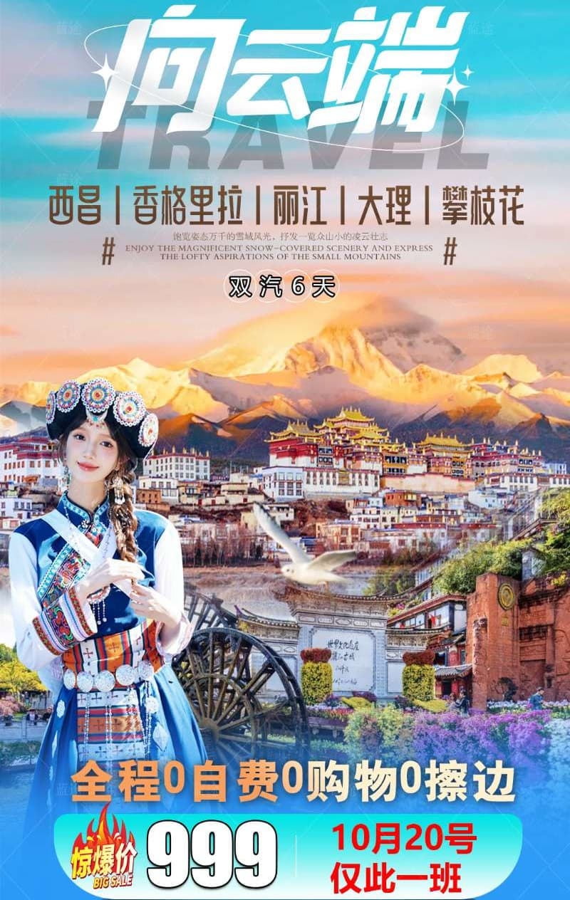 【立戰國旅】10月20-25日(向云端)云南香格里拉深度雙汽6日游